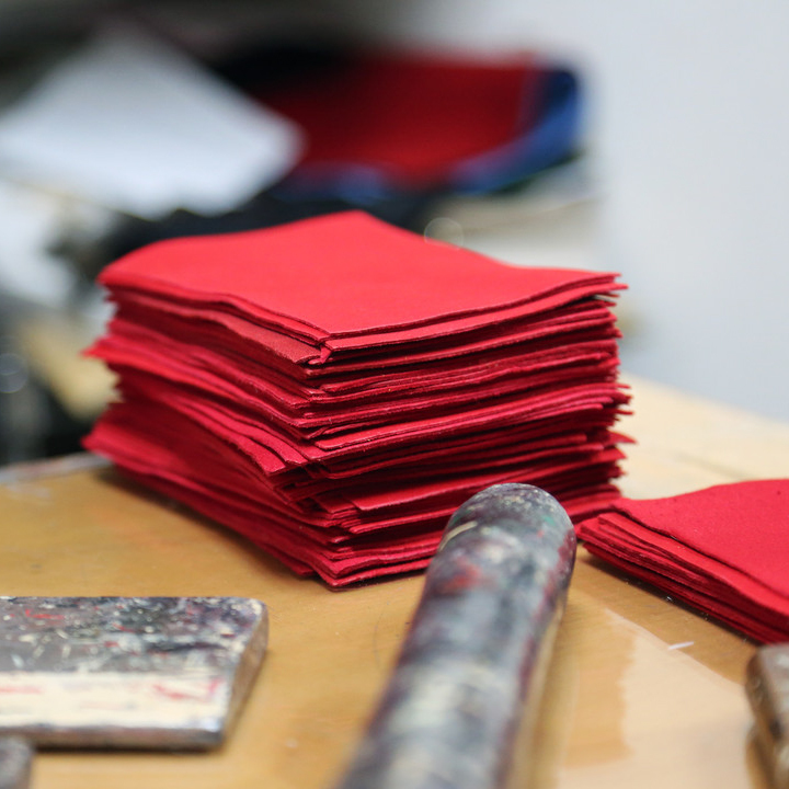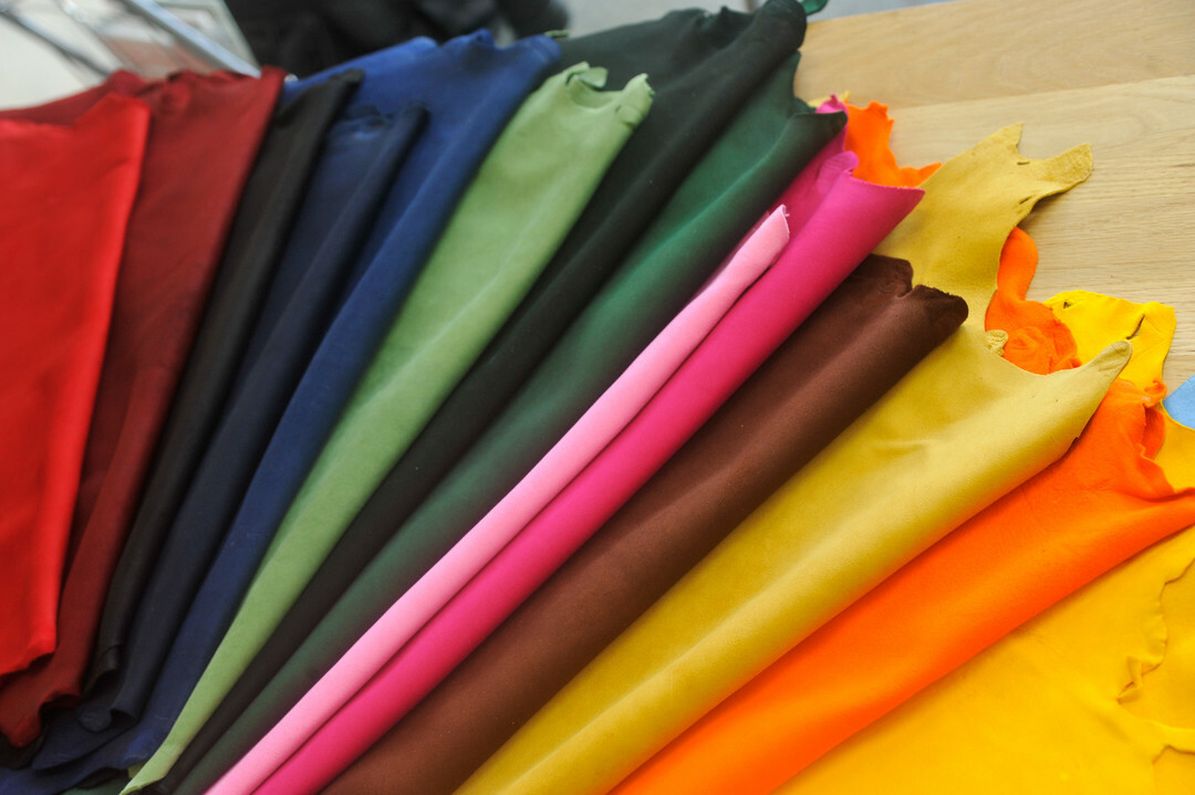 針對鹿皮進行染色,再裁切需要的部分給予下一個製程。