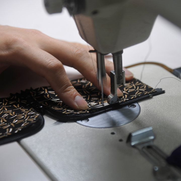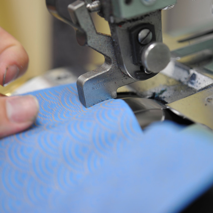 乾燥過後的鹿皮,根據每個片皮的形狀與功能,車縫接合,逐漸拼湊成包的形狀。
